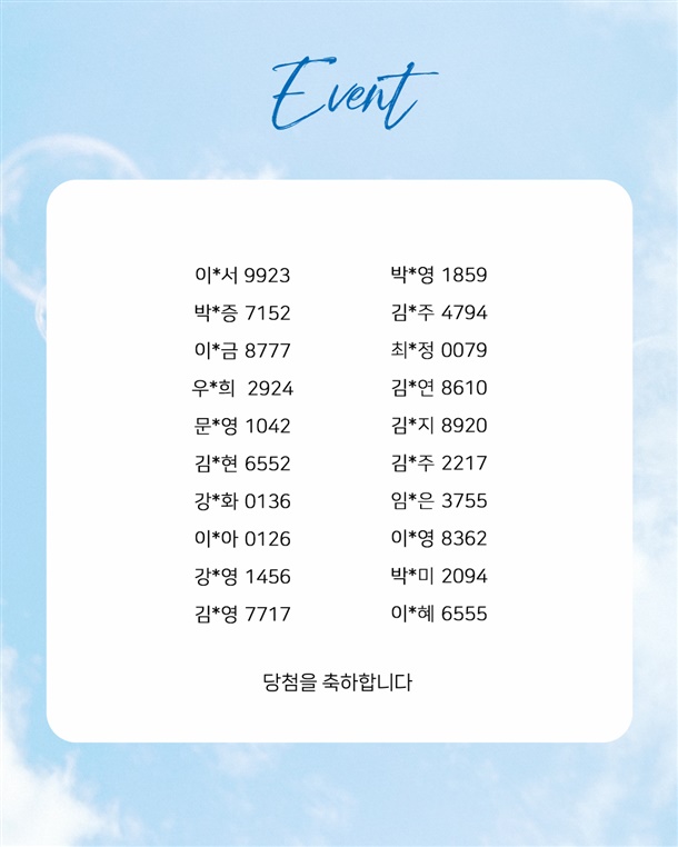 2월 뽀송스 스퀴지 선착순 이벤트 당첨자 명단