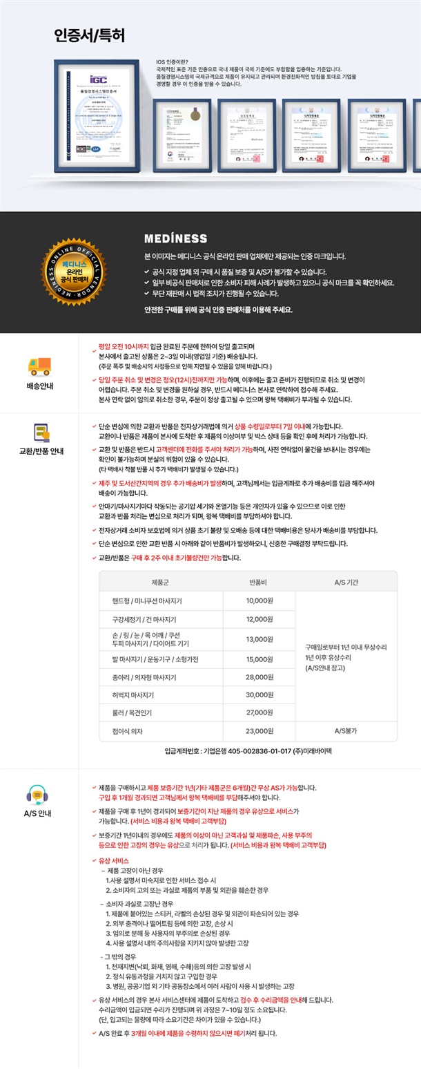 · 교환/반품/AS 등은 "공정거래위원회"에서 정한 소비자 분쟁 해결 기준을 따르고 있습니다.