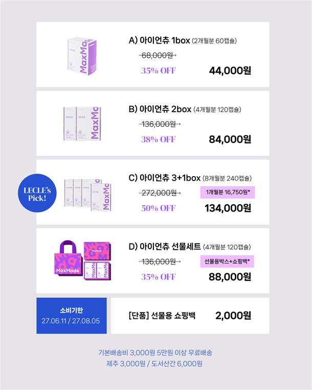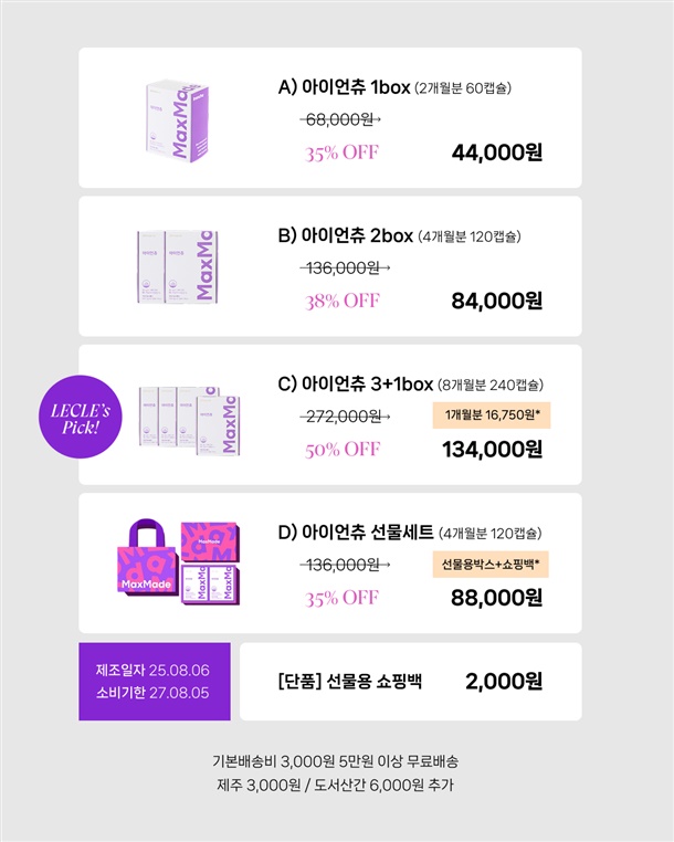 · 배송비: 3,000원 (50,000원 이상 무료배송)