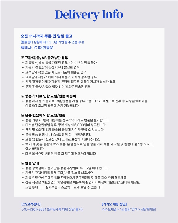 · 일부 상품에 대해서 교환/반품 정책이 위와 상이할 수 있습니다.