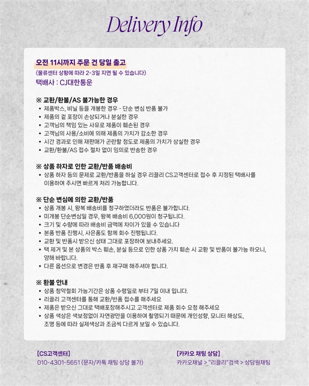 · 상품 불량 사유와 사진을 남겨 주시면 빠른 처리가 가능합니다.